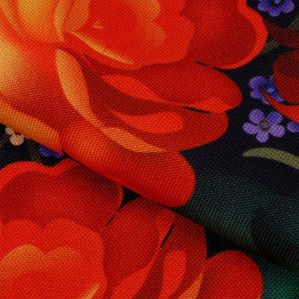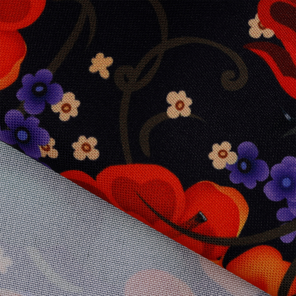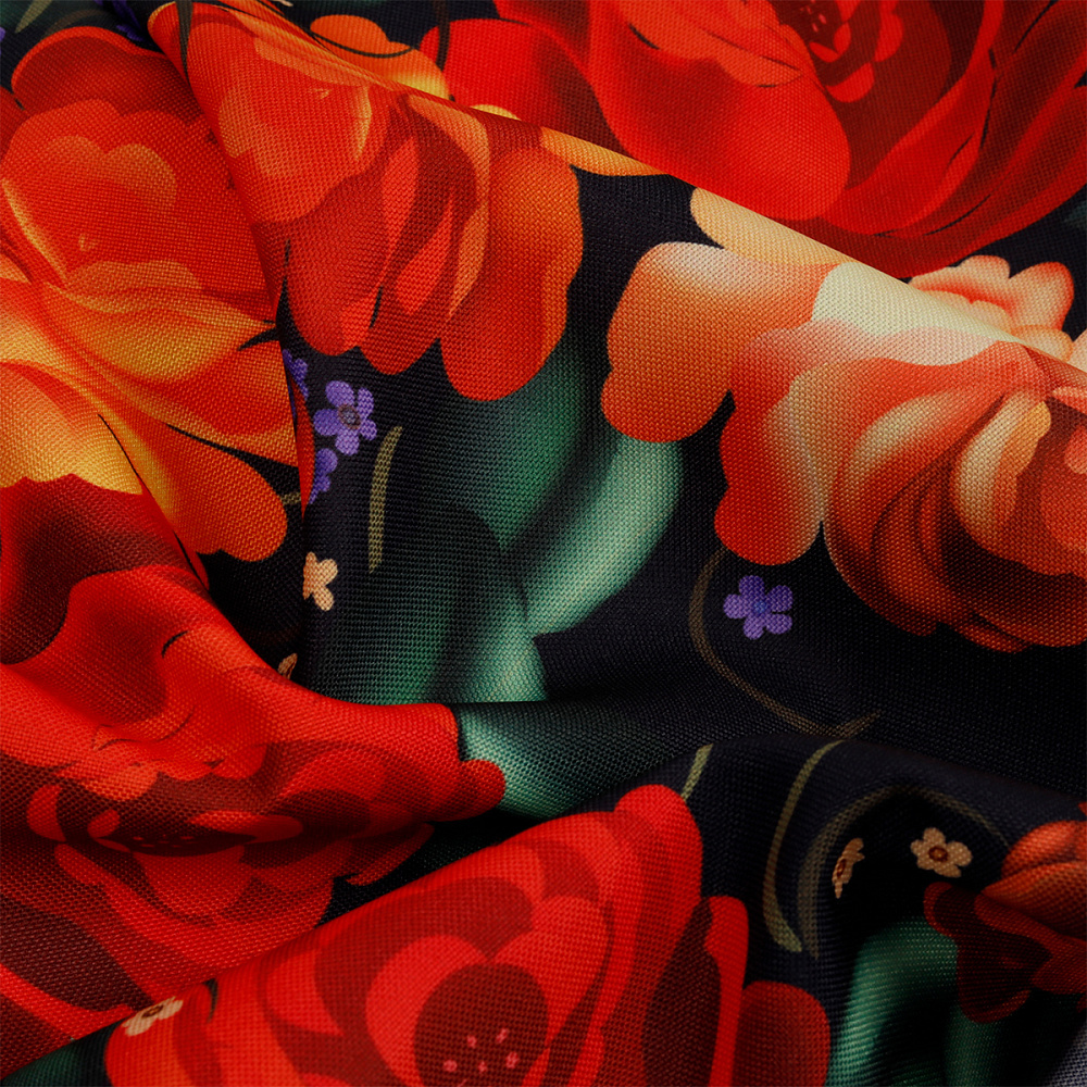 Габардин представляет собой ткань полотняного переплетения с узором, нанесённым сублимационной печатью. Материал устойчив к механическим повреждениям, не мнется, приятен на ощупь и не пиллингуется. Область применения Габардина широка из-за удобства в раскрое и шитье. Благодаря яркому рисунку из него шьют русские народные костюмы, изготавливают декорации и такие предметы интерьера, как шторы, скатерти и т.д. Изделия из Габардина имеют большой срок службы, а также неприхотливы в уходе: стрика с помощью моющих средств без агрессивных компонентов в составе. Сушить вещи желательно в расправленном виде, а гладить с изнанки при температуре подошвы утюга не более 150 градусов.
