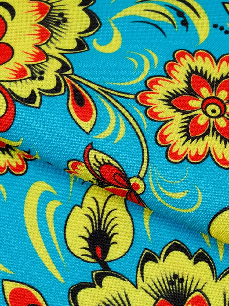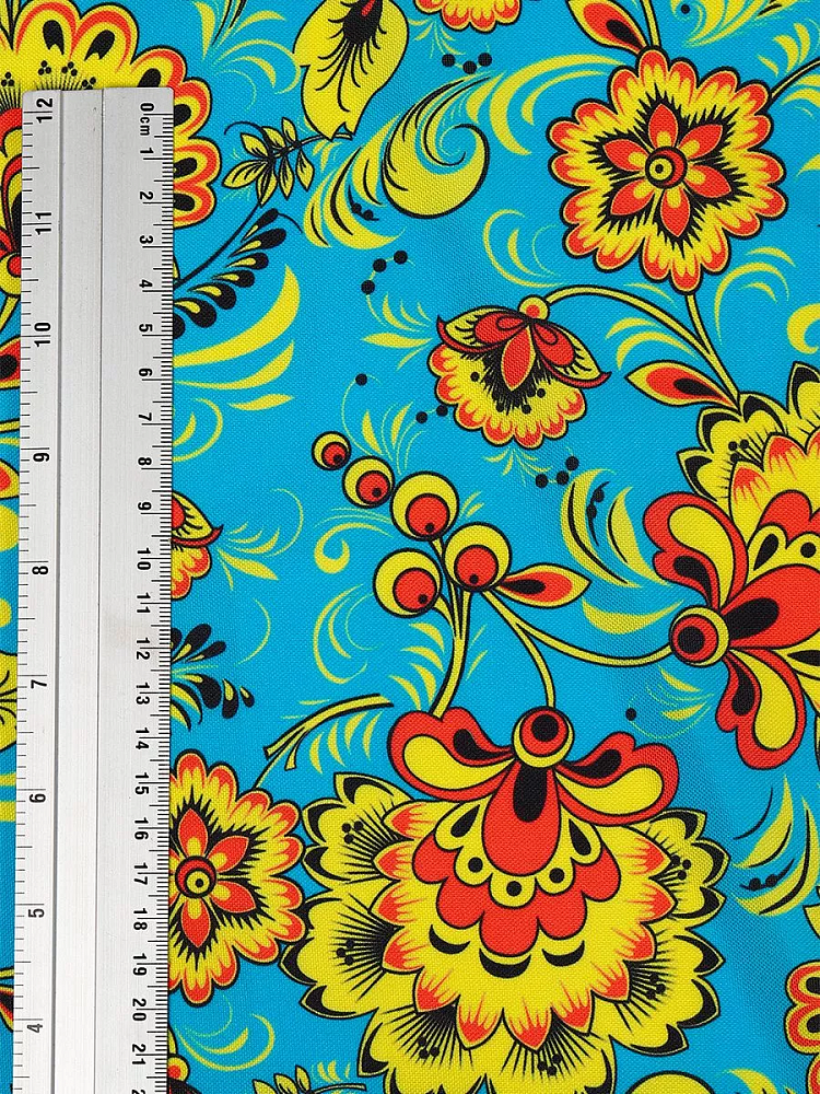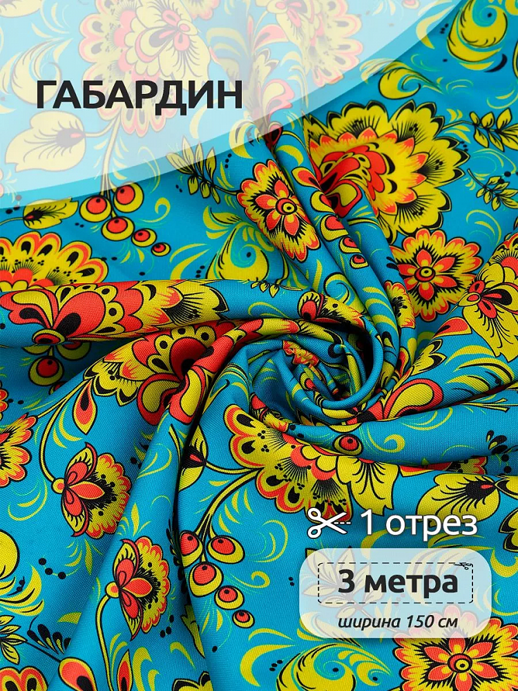 Габардин представляет собой ткань полотняного переплетения с узором, нанесённым сублимационной печатью. Материал устойчив к механическим повреждениям, не мнется, приятен на ощупь и не пиллингуется. Область применения Габардина широка из-за удобства в раскрое и шитье. Благодаря яркому рисунку из него шьют русские народные костюмы, изготавливают декорации и такие предметы интерьера, как шторы, скатерти и т.д. Изделия из Габардина имеют большой срок службы, а также неприхотливы в уходе: стрика с помощью моющих средств без агрессивных компонентов в составе. Сушить вещи желательно в расправленном виде, а гладить с изнанки при температуре подошвы утюга не более 150 градусов.