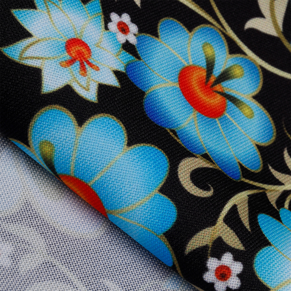 Габардин представляет собой ткань полотняного переплетения с узором, нанесённым сублимационной печатью. Материал устойчив к механическим повреждениям, не мнется, приятен на ощупь и не пиллингуется. Область применения Габардина широка из-за удобства в раскрое и шитье. Благодаря яркому рисунку из него шьют русские народные костюмы, изготавливают декорации и такие предметы интерьера, как шторы, скатерти и т.д. Изделия из Габардина имеют большой срок службы, а также неприхотливы в уходе: стрика с помощью моющих средств без агрессивных компонентов в составе. Сушить вещи желательно в расправленном виде, а гладить с изнанки при температуре подошвы утюга не более 150 градусов.