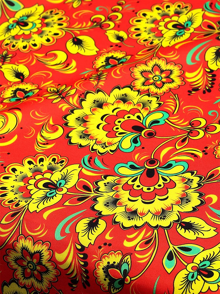 Габардин представляет собой ткань полотняного переплетения с узором, нанесённым сублимационной печатью. Материал устойчив к механическим повреждениям, не мнется, приятен на ощупь и не пиллингуется. Область применения Габардина широка из-за удобства в раскрое и шитье. Благодаря яркому рисунку из него шьют русские народные костюмы, изготавливают декорации и такие предметы интерьера, как шторы, скатерти и т.д. Изделия из Габардина имеют большой срок службы, а также неприхотливы в уходе: стирка с помощью моющих средств без агрессивных компонентов в составе. Сушить вещи желательно в расправленном виде, а гладить с изнанки при температуре подошвы утюга не более 110 градусов.