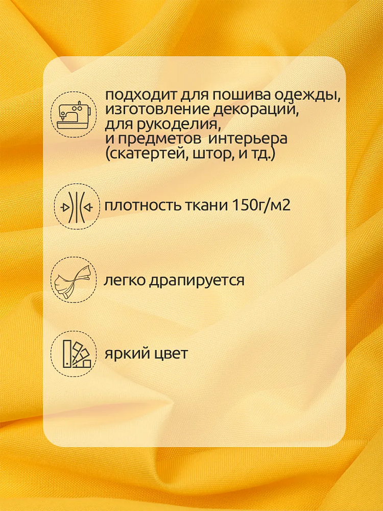 Габардин 150 г/м², 150 см / 3 метра, TBYGab-150001, S001 желтый