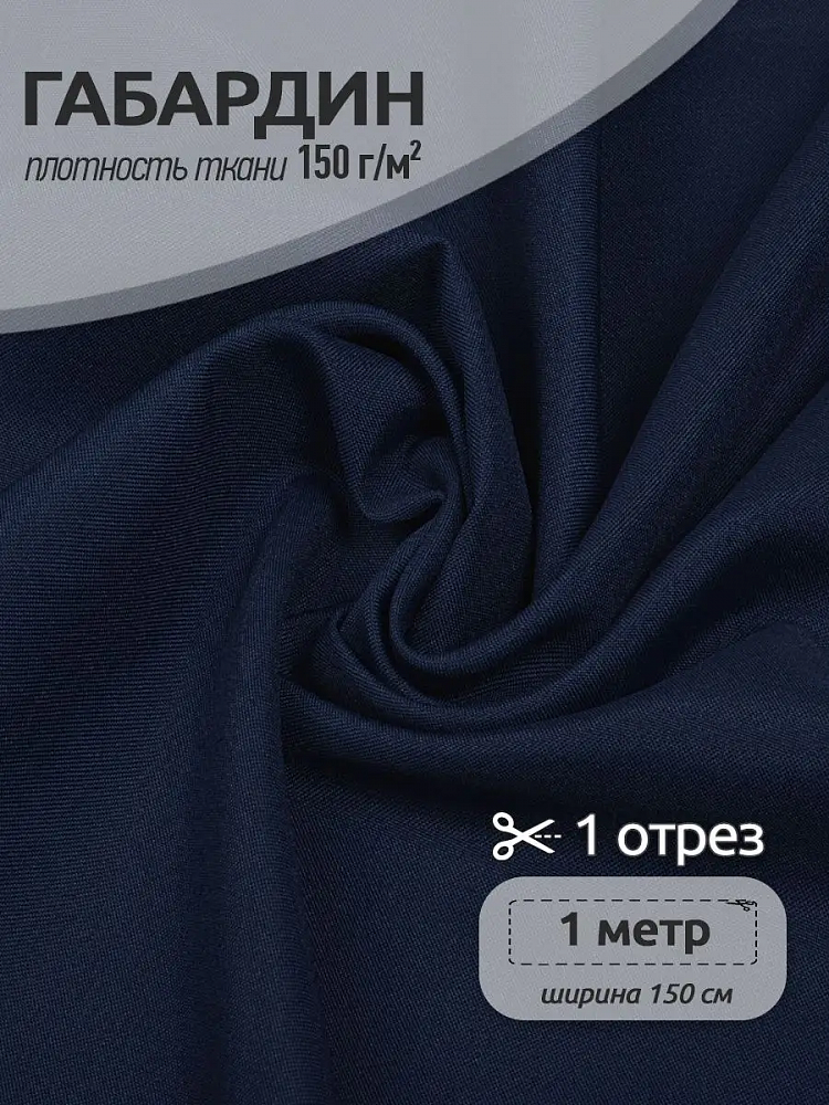 Габардин 150 г/м², 150 см / 1 метр, TBY.150330.1, цв.330 темн.синий