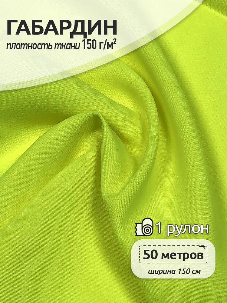 Габардин 150 г/м², 150 см / 50 метров, TBY.163960, цв.неон лимон