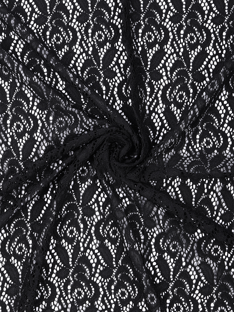 Ткань кружевная гипюр стрейч 160 г/м², ш.150см, арт.SZ031636 цв.черный, уп.1м