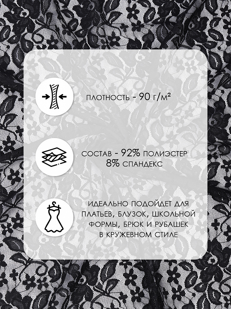 Гипюр стрейч 90 г/м², 150 см / 1 метр, TBY.M0064, черный
