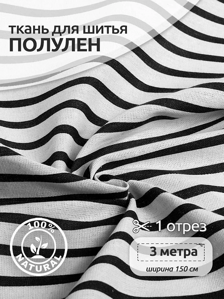 Льняная ткань 140 г/м², 150 см / 3 метра, TBY.DJ.13-1-3, цв.черный
