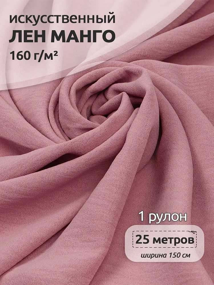 Лен Манго 160 г/м², 150 см / 25 метров, TBY.Mg.06, цв.св.розовый