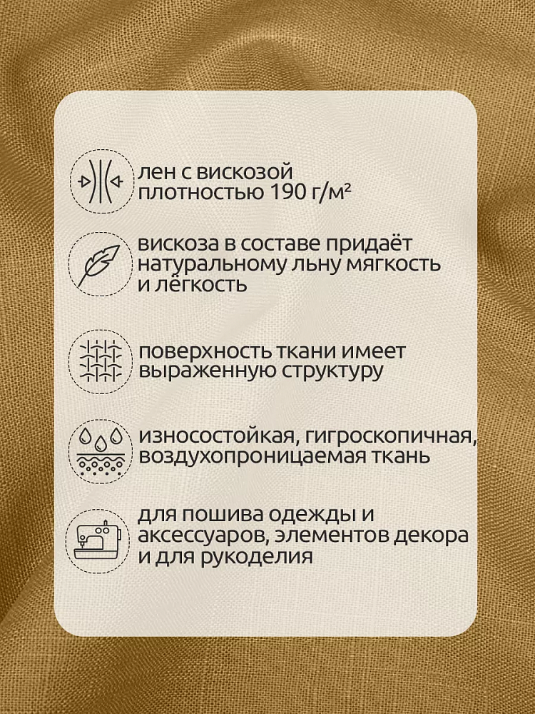 В состав данной ткани входит лен – натуральный, экологичный материал. Вискоза-добавлена для умягчения ткани, придания ей легкости, воздушности и уменьшения сминаемости. Экологичные, натуральные волокна не вызывают аллергии, позволяют коже дышать. Отличная ткань для людей, которые выбирают экологичность и практичность. Ткань имеет выраженную структуру полотна. Лен широко применяется для пошива одежды для взрослых и детей, народных костюмов, постельных принадлежностей, для оформления интерьера, изготовления кукол и игрушек. Однотонные ткани это классический ассортимент, который всегда будет актуален и востребован.