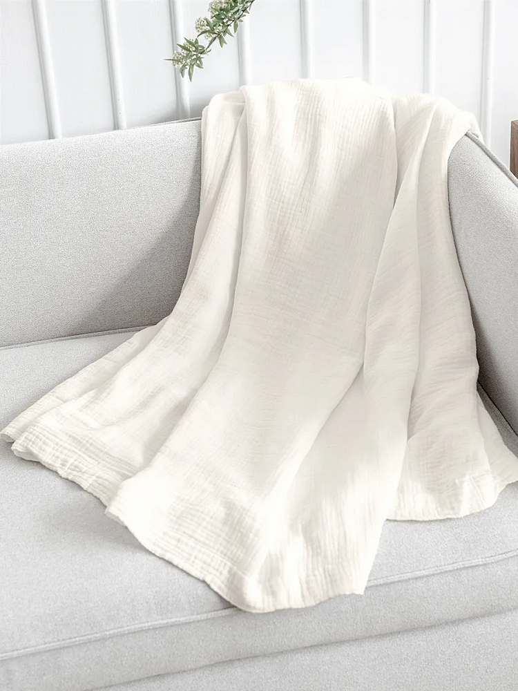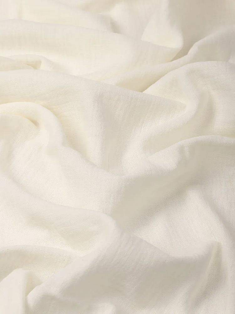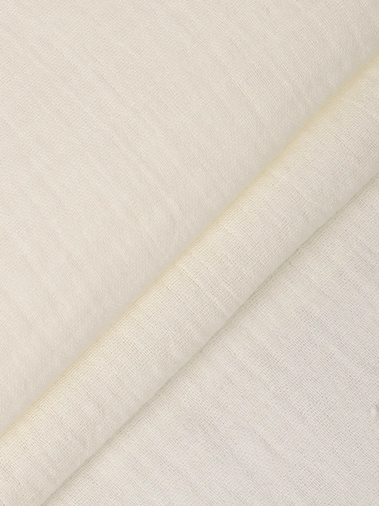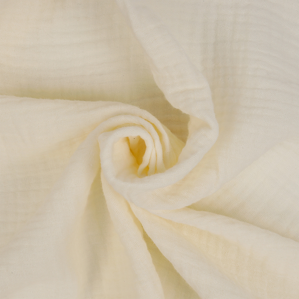 Двухслойная ткань Муслин с эффектом крэш — это натуральное волокно особого плетения хлопковых нитей. Муслин имеет легкую текстуру, нежную поверхность, а ввиду жатого эффекта создается впечатление воздушности ткани. Несмотря на внешнюю рыхлость, нити Муслина туго скучены, что придаёт изделию прочность. Также ткань обладает всеми положительными свойствами хлопковых полотен: воздухопроницаемостью и гипоаллергенностью, износостойкостью и гигроскопичностью, не подвержен появлению катышков и удобен в носке. Муслиновые изделия смотрятся интересно, стильно и необычно: трендовые летние костюмы, топы, легкие платья и рубашки, детская одежда и нежные домашние пижамы свободного кроя. Благодаря многослойности муслин не просвечивает, так что все изделия можно шить без подклада. Муслин требует грамотного ухода: допускается машинная стирка в деликатном режиме на низких оборотах при температуре не выше 40 градусов. Средства для стирки должны быть мягкими, без хлора.
