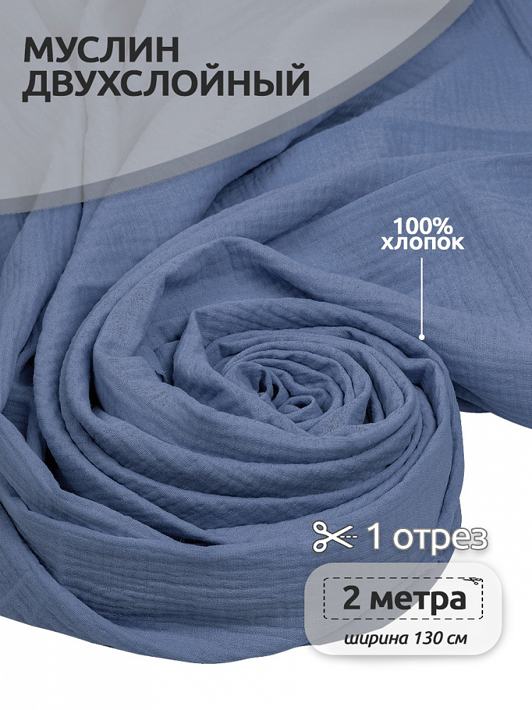 Муслин 125 г/м², 130 см / 2 метра, TBY.Mus.24723.67.2, цв.67 бл.синий