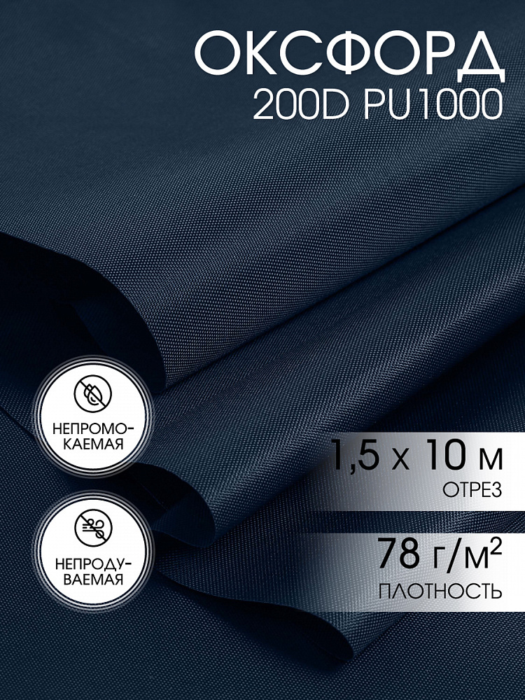 Оксфорд 200D PU1000 78 г/м², 150 см / 10 метров, ОКС.TBY200D.S058.10, S058 т.синий