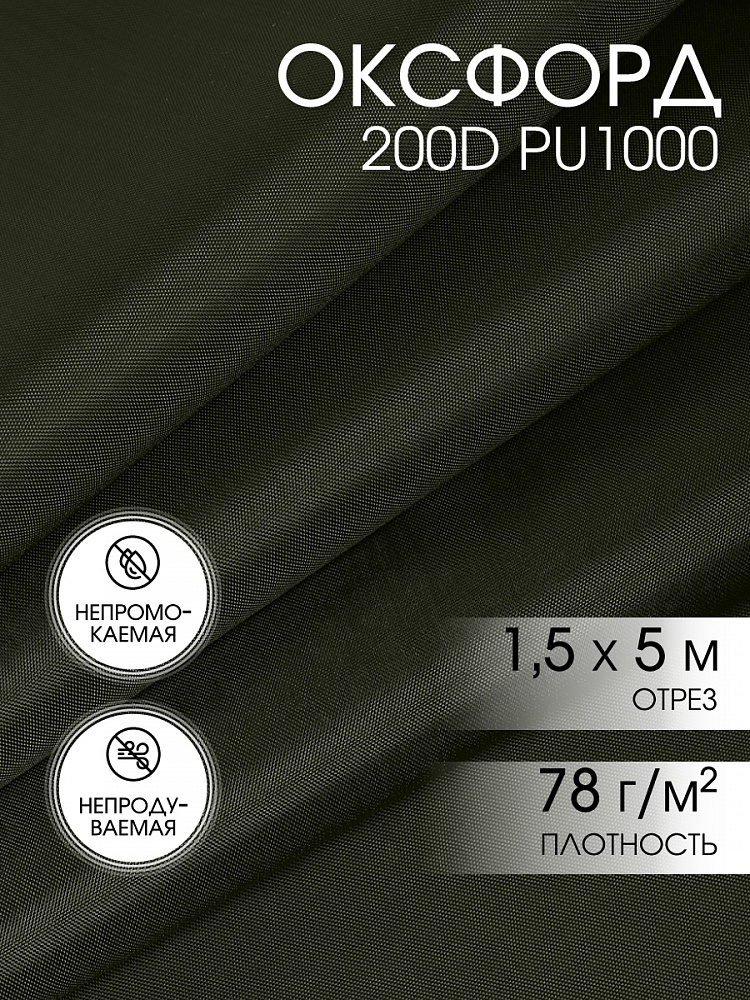 Оксфорд 200D PU1000 78 г/м², 150 см / 5 метров, ОКС.TBY200D.S305.5, S305 хаки
