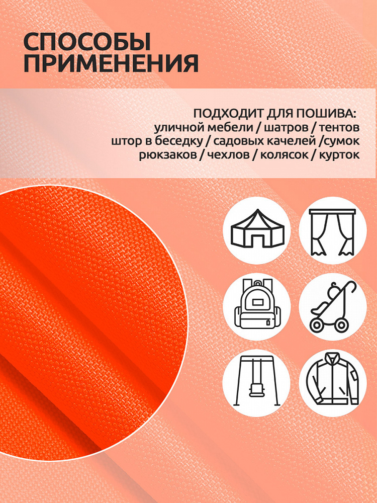 Оксфорд 600D PU1000 220 г/м², 150 см / 5 метров, ОКС.TBY600D.580.5, 580 неон оранжевый