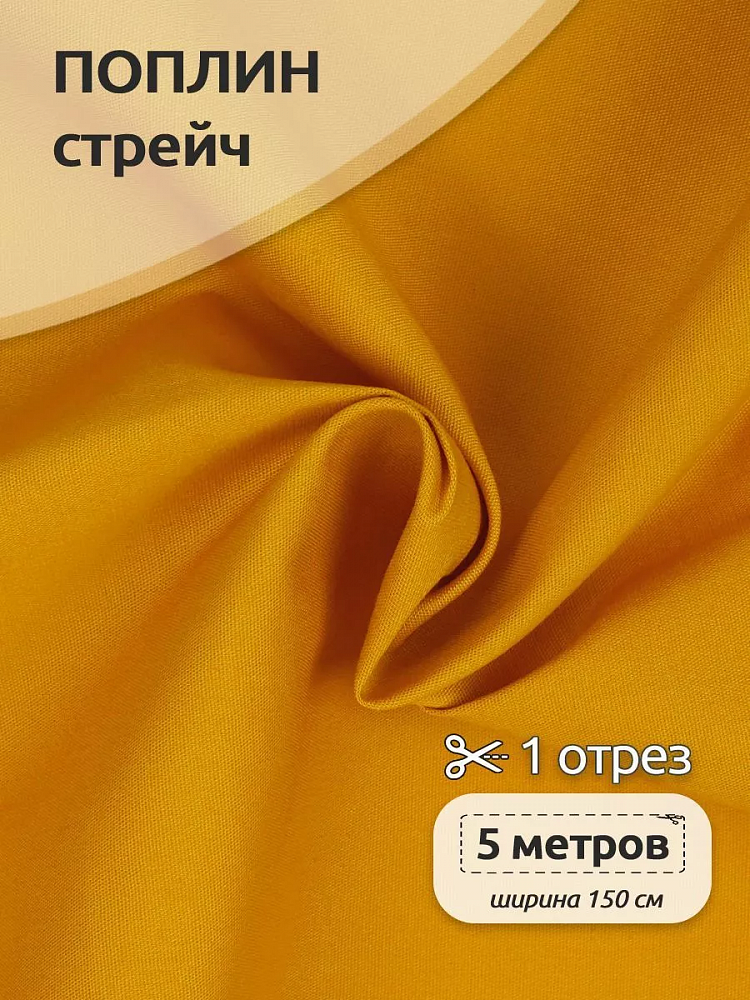 Поплин стрейч 125 г/м², 150 см / 5 метров, TBY.Csp.1802.46.5, цв.46 горчица
