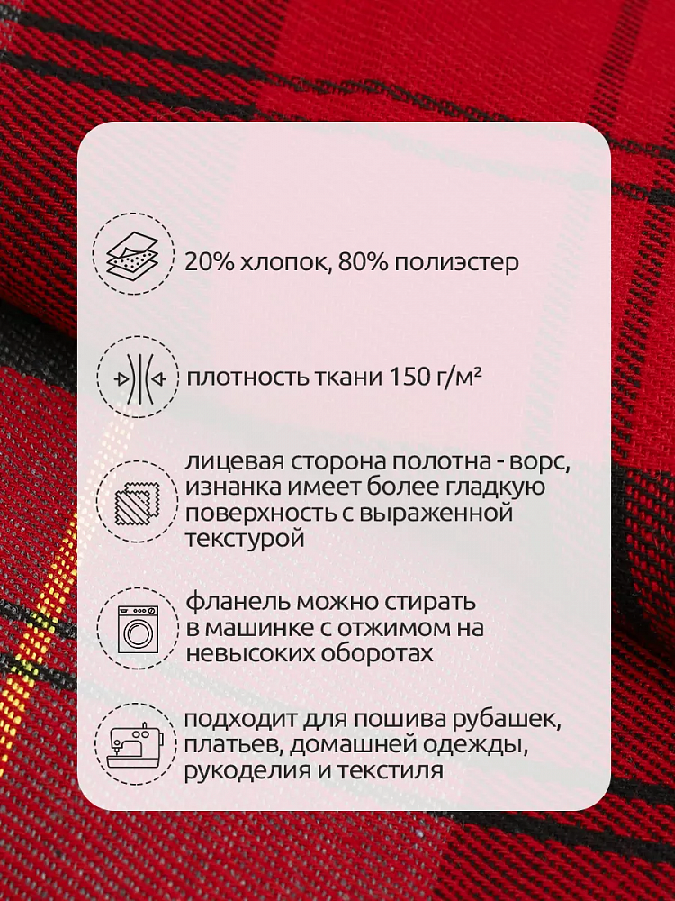Фланель рубашечная 150 г/м², 150 см / 2 метра, TBY.Fl.T399.2, цв.399 красный