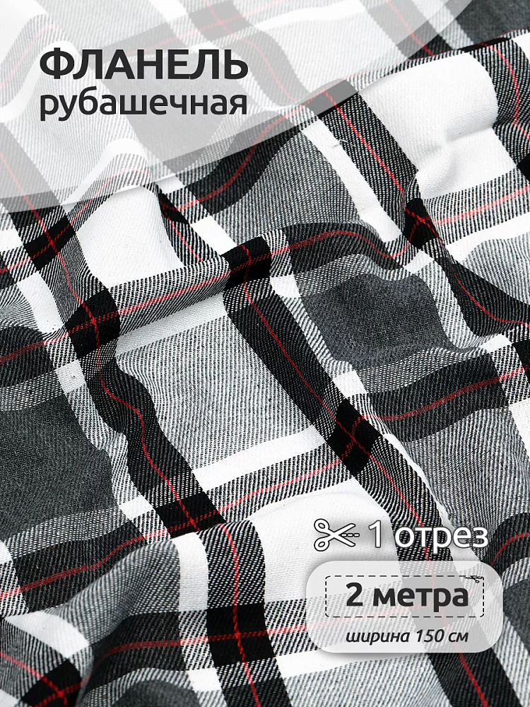 Фланель рубашечная 150 г/м², 150 см / 2 метра, TBY.Fl.T439.2, цв.439 черный