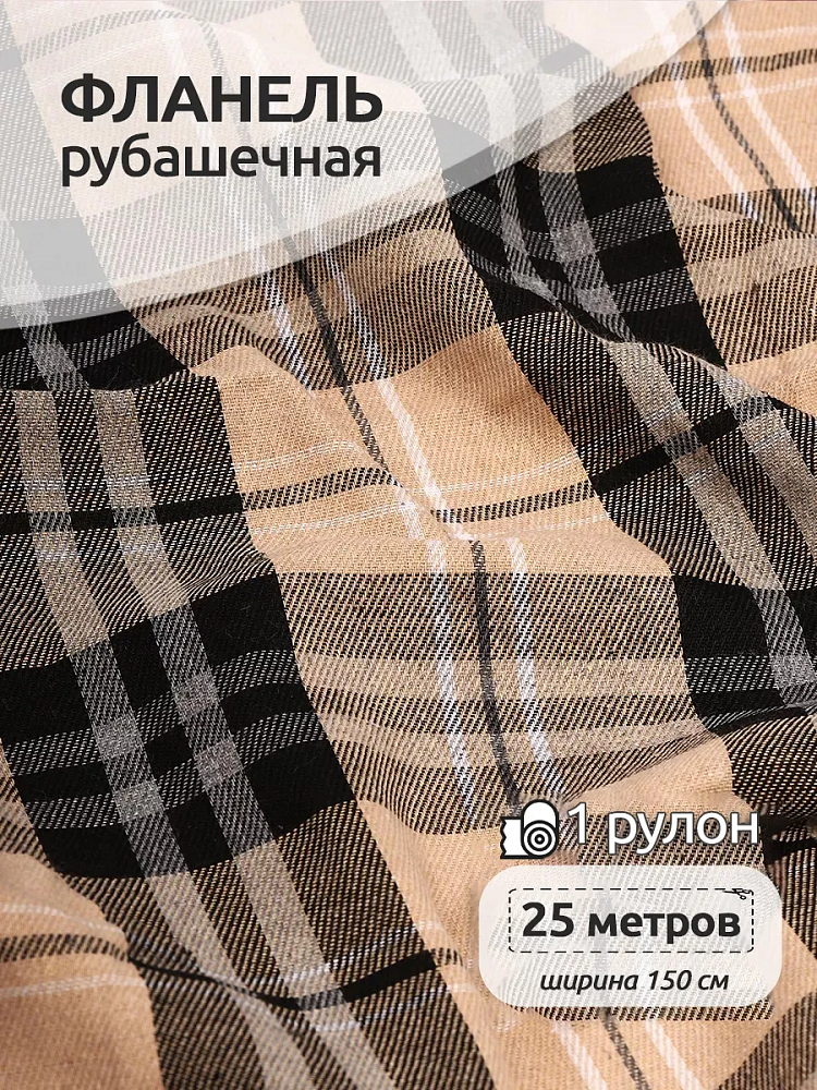 Ткань рубашечная Фланель - смесовый материал, отличающийся своей универсальностью. На лицевой стороне полотна ворс, изнанка имеет более гладкую поверхность с выраженной текстурой. Фланель обладает высокими износостойкими характеристиками, не тянется и не скатывается, при этом ткань мягкая и хорошо удерживает тепло. Актуальный принт в клетку популярен при пошиве таких изделий, как рубашки, платья, а также домашней одежды, рукоделия и текстиля. Фланель можно стирать в машинке с отжимом на невысоких оборотах