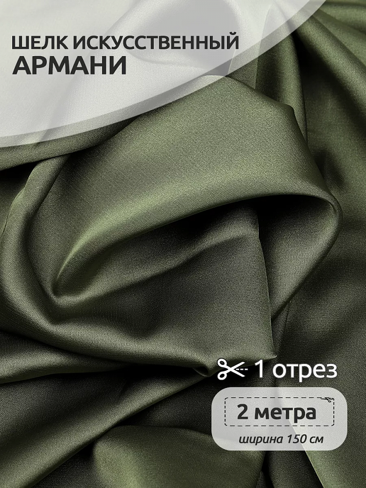 Армани шелк (искусственный шелк) - это синтетическая плательно-блузочная ткань, тонкая и нежная. Имеет приятную гладкую поверхность с матовым блеском, немного тянется в ширину полотна. Полотно с двойным прокрасом, что улучшает технологические качества материала. Ткань красиво и легко драпируется, способна образовывать даже очень мелкие складки. Особенностью ткани является её близкое сходство по внешнему виду с натуральным шёлком. Идеален для пошива изделий в бельевом стиле и вечерних платьев, блузок, юбок, костюмов. Кроме того, это хороший вариант подклада под шифон, кружево или гипюр, используется для изготовления палантинов, платков и шарфиков. Светлые оттенки немного просвечивают.