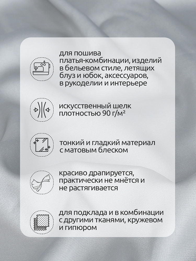 4454444.png   Допускается незначительное отклонение оттенка Товара, в т.ч. связанное с цветопередачей экранов различных устройств. При заказе текстильного товара, отпускаемого на метраж, допустимым считается отклонение от количества заказа (недомер), в пределах 5% от количества метража по всем сторонам полотна, указанного на сайте, в документах и/или на маркировке рулона, а также отклонение параметром плотности, ширины, толщины и состава Товара в переделах 5% от указанного на сайте, в документах и/или маркировке рулона в связи с технологическими особенностями текстильного производства. При этом поставка товара по количеству считается надлежащей, претензии о недостаче в указанных пределах Продавцом не принимаются. В метражном товаре, в т.ч. тканях, согласно ГОСТ 8737-77 в рулоне/бобине могут быть отрезы, сшитые между собой, разрезы, вырезы, зацепы, штампы заводские и другие пороки, называемые условный вырез, в количестве до 3-х на 30 метрах и далее по одному шву или условному вырезу на каждые последующие 15 метров. Металлофурнитура и пластиковая фурнитура (фиксаторы, рамки, наконечники, фастексы, замки молний и другое) без индивидуальной упаковки каждой единицы товара или расфасованные в групповую упаковку или поставляемые без упаковки могут содержать незначительные потертости металла, что не является браком. Такие дефекты рассматриваются как особенности хранения и транспортировки такой продукции.