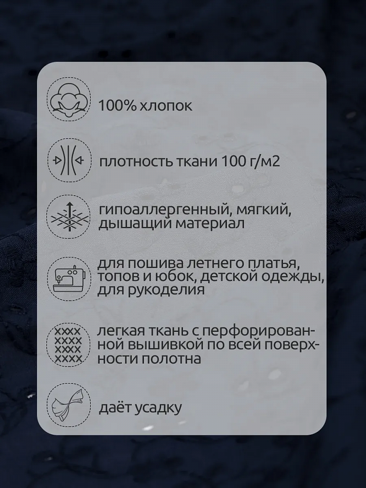 Ткань шитьё (прошва) 100 г/м², 150 см / 2 метра, TBY.Emb.8067.16, 16 т.синий