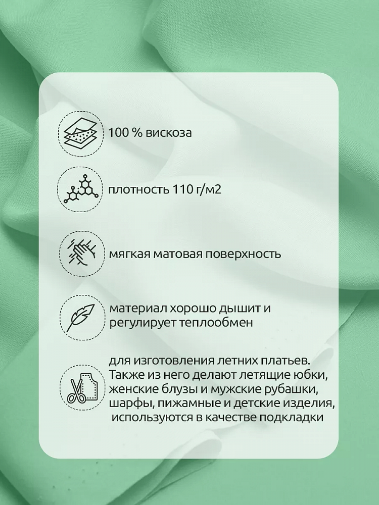 Штапель 110 г/м², 145 см / 2 метра, TBY-Vi-30-40.2, цв.40 св.зеленый