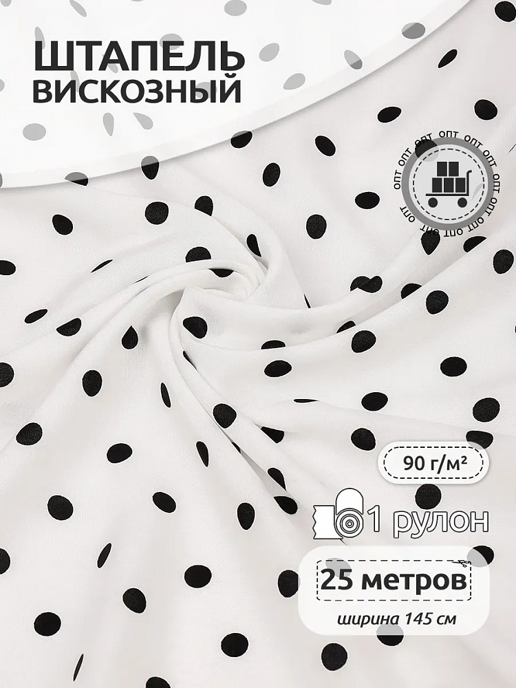 Штапель в горошек 90 г/м², 145 см / 25 метров, TBY.Vidt.04 цв.белый