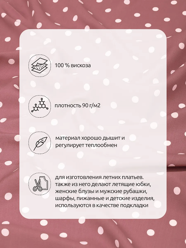 Штапель в горошек 90 г/м², 145 см / 2 метра, TBY.Vidt.08 цв.розовый