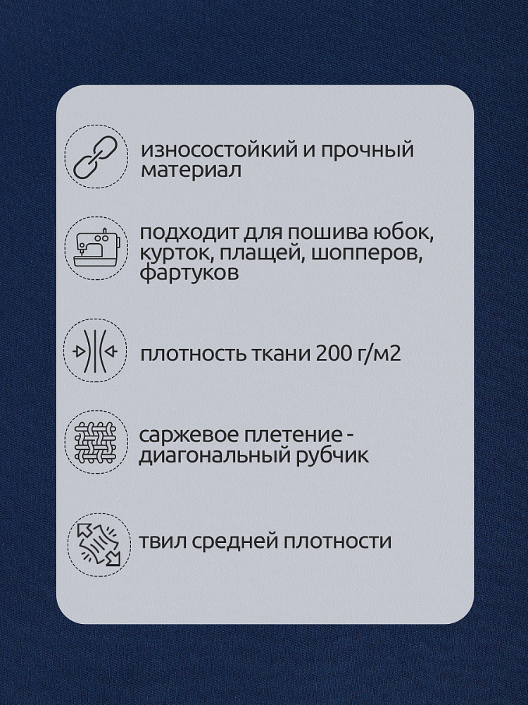 Твил смесовый WR 200 г/м², 150 см / 1.5 метра, т.синий