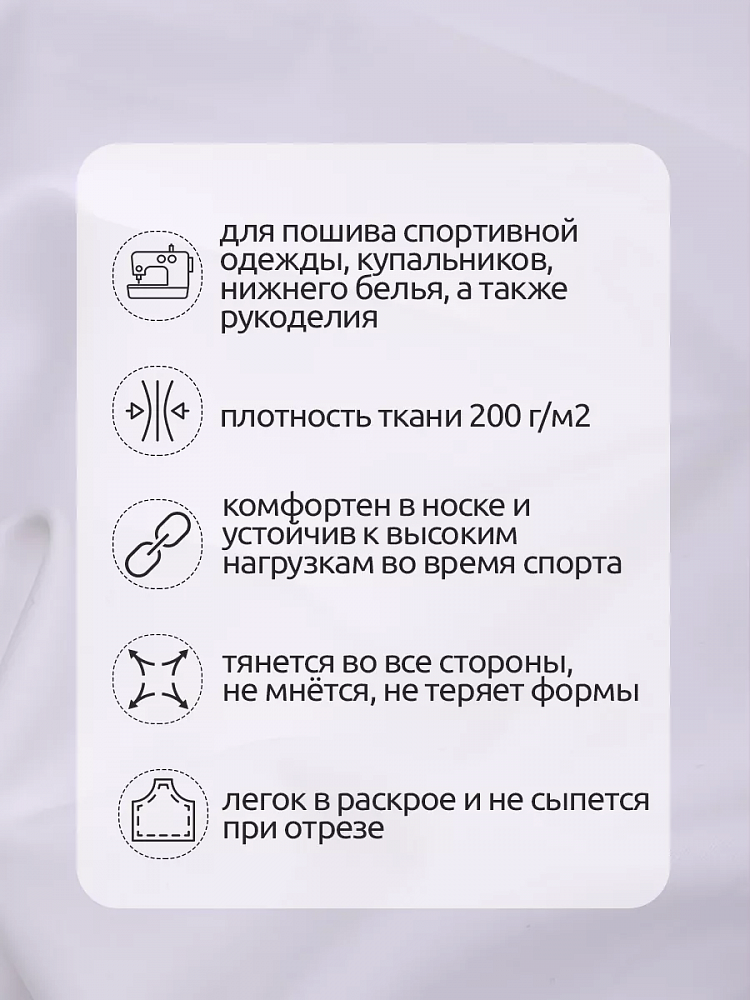 Высококачественный и современный материал для пошива одежды: купальников, нижнего белья, повседневной и спортивной. Состав ткани: Нейлон (полиамид). Состав хорошо подходит для одежды, которую надевают на голое тело, не вызывает аллергию, хорошо сохраняет форму и отводит влагу. Характерной особенностью бифлекса является то, что он тянется, как вдоль, так и поперек полотна, что позволяет одежде для спорта или нижнего белья быть особенно комфортной при различных нагрузках. Матовость придает ткани благородность и изысканность.