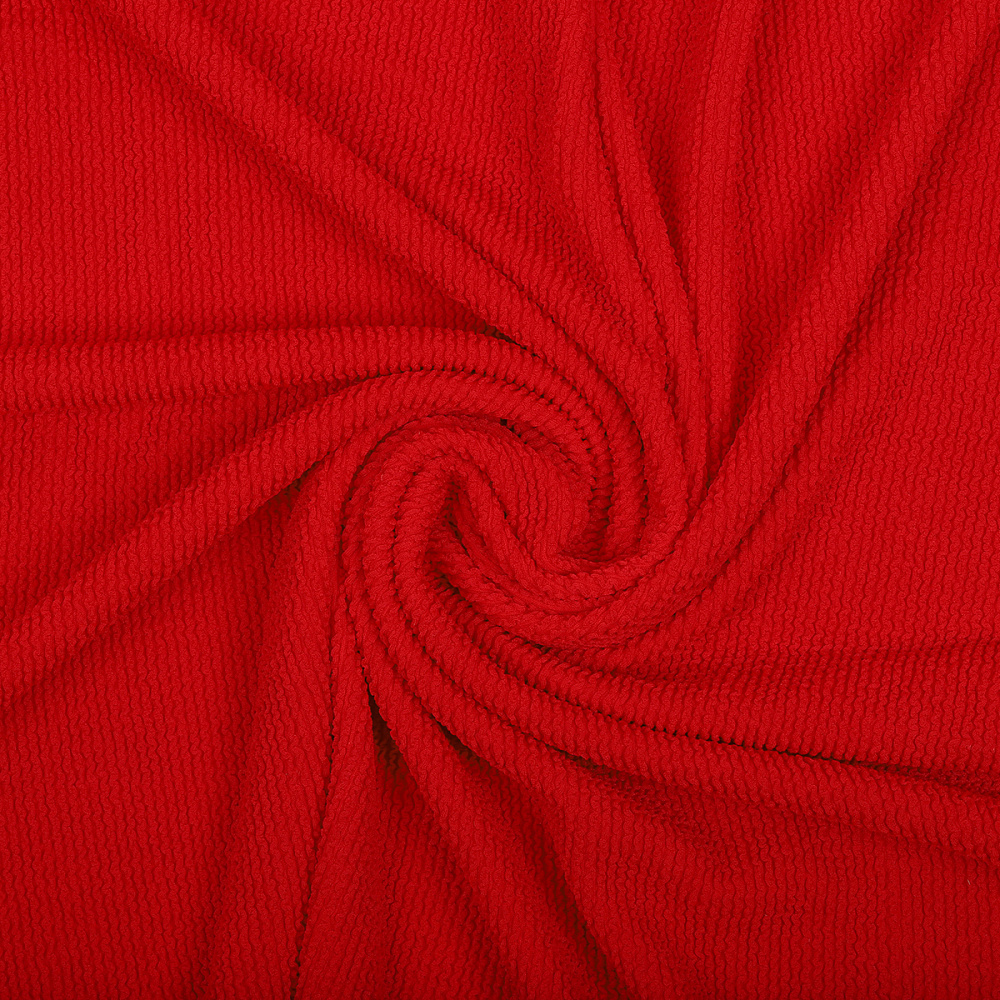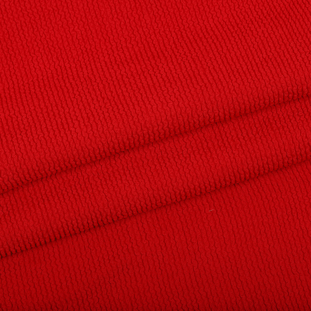 Ткань Бифлекс жатка – синтетический эластичный трикотаж, имеющий текстурированную поверхность. Лицевая сторона имеет гофрированную фактуру, а изнанка имеет однородную ребристую поверхность. Благодаря составу бифлекс тянется, увеличивая площадь полотна в несколько раз, при этом не рвётся, не мнется, гипоаллергенен и хорошо отводит влагу. Материал отлично подходит для пошива спортивных и танцевальных костюмов и купальников, так как облегает тело, но не натирает. При стирке рекомендуется применять жидкие моющие средства, температура воды не должна превышать 30–40°С. При соблюдении условий ухода, жатый эффект не исчезает при намокании и после стирок. Данный артикул обладает высоким коэффициентом сжатия, что обеспечивает более высокую плотность, чем у аналогов.
