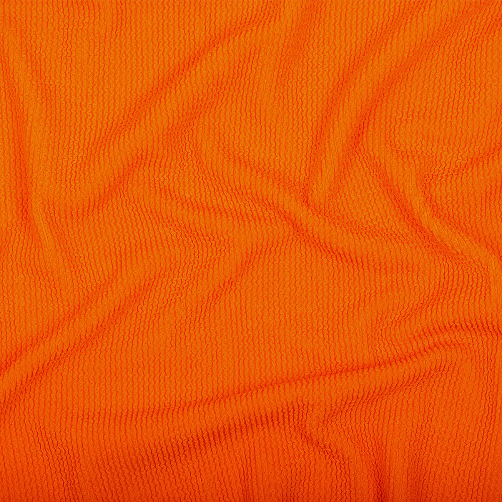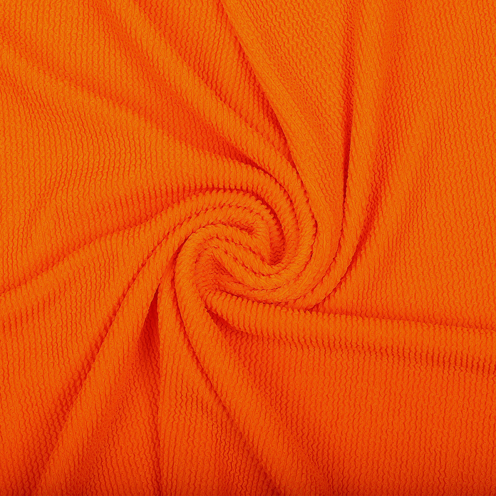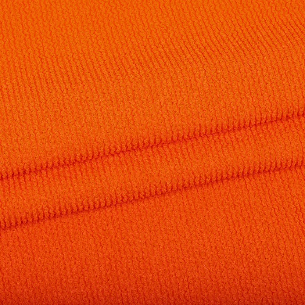 Ткань Бифлекс жатка – синтетический эластичный трикотаж, имеющий текстурированную поверхность. Лицевая сторона имеет гофрированную фактуру, а изнанка имеет однородную ребристую поверхность. Благодаря составу бифлекс тянется, увеличивая площадь полотна в несколько раз, при этом не рвётся, не мнется, гипоаллергенен и хорошо отводит влагу. Материал отлично подходит для пошива спортивных и танцевальных костюмов и купальников, так как облегает тело, но не натирает. При стирке рекомендуется применять жидкие моющие средства, температура воды не должна превышать 30–40°С. При соблюдении условий ухода, жатый эффект не исчезает при намокании и после стирок. Данный артикул обладает высоким коэффициентом сжатия, что обеспечивает более высокую плотность, чем у аналогов.