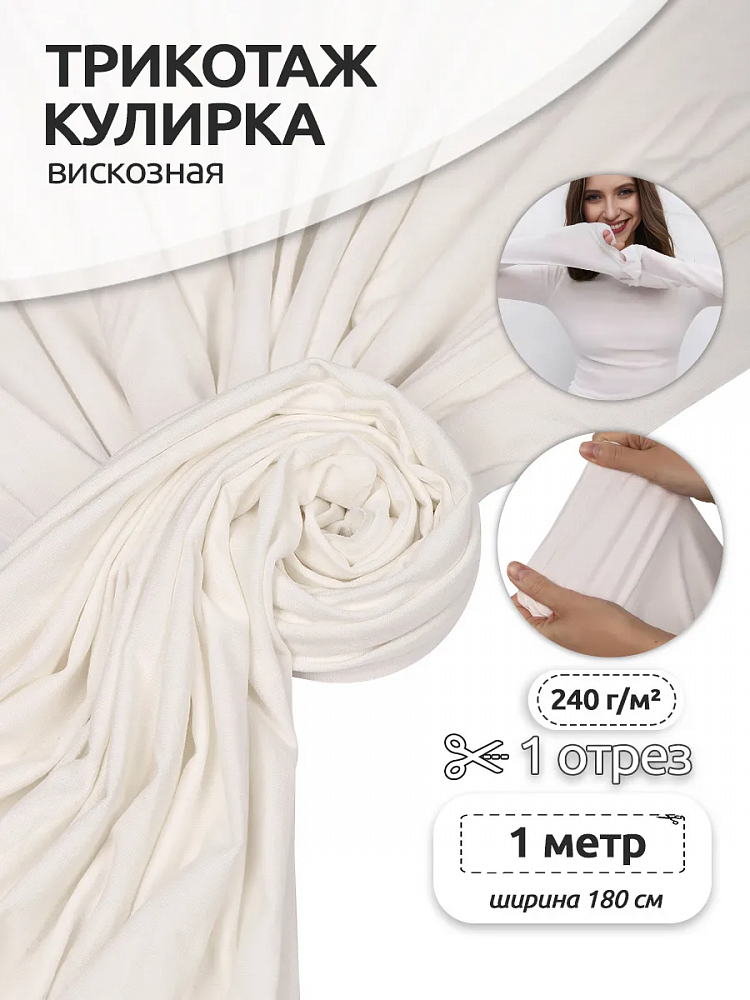 Вискоза трикотажная 240 г/м², 180 см / 1 метр, TBY.023709, белый теплый