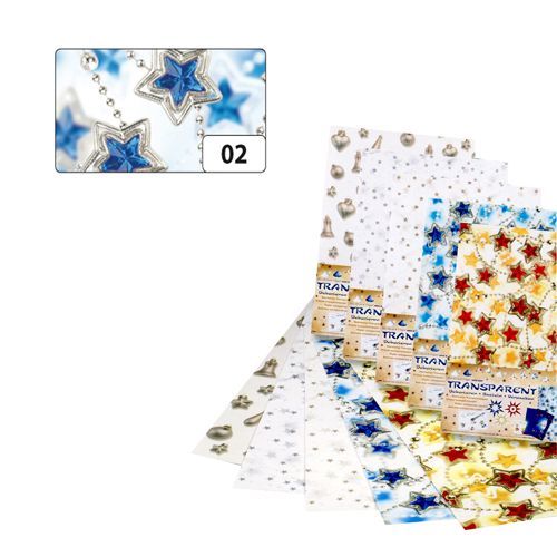Транспарентная бумага – полупрозрачная бумага с рисунком. Хорошо держит форму, рисунок не стирается от трения и не пачкает руки. Таким материалом в основном оформляют коробки с подарками. Чтобы упаковка выглядела аккуратной, для фиксации лучше использовать двусторонний скотч. Готовую коробку декорируют лентами, бантами, стикерами, ярлычками – экспериментируйте и проявляйте фантазию! Другие идеи: – Украсьте этим материалом рамку, шкатулку. – Используйте бумагу как обложку для блокнота или альбома. – Попробуйте сделать из этих листов праздничные гирлянды, украшения на елку и другие поделки. В упаковке 1 лист плотностью 115 г/м². Размер листа: 50,5х70 см.