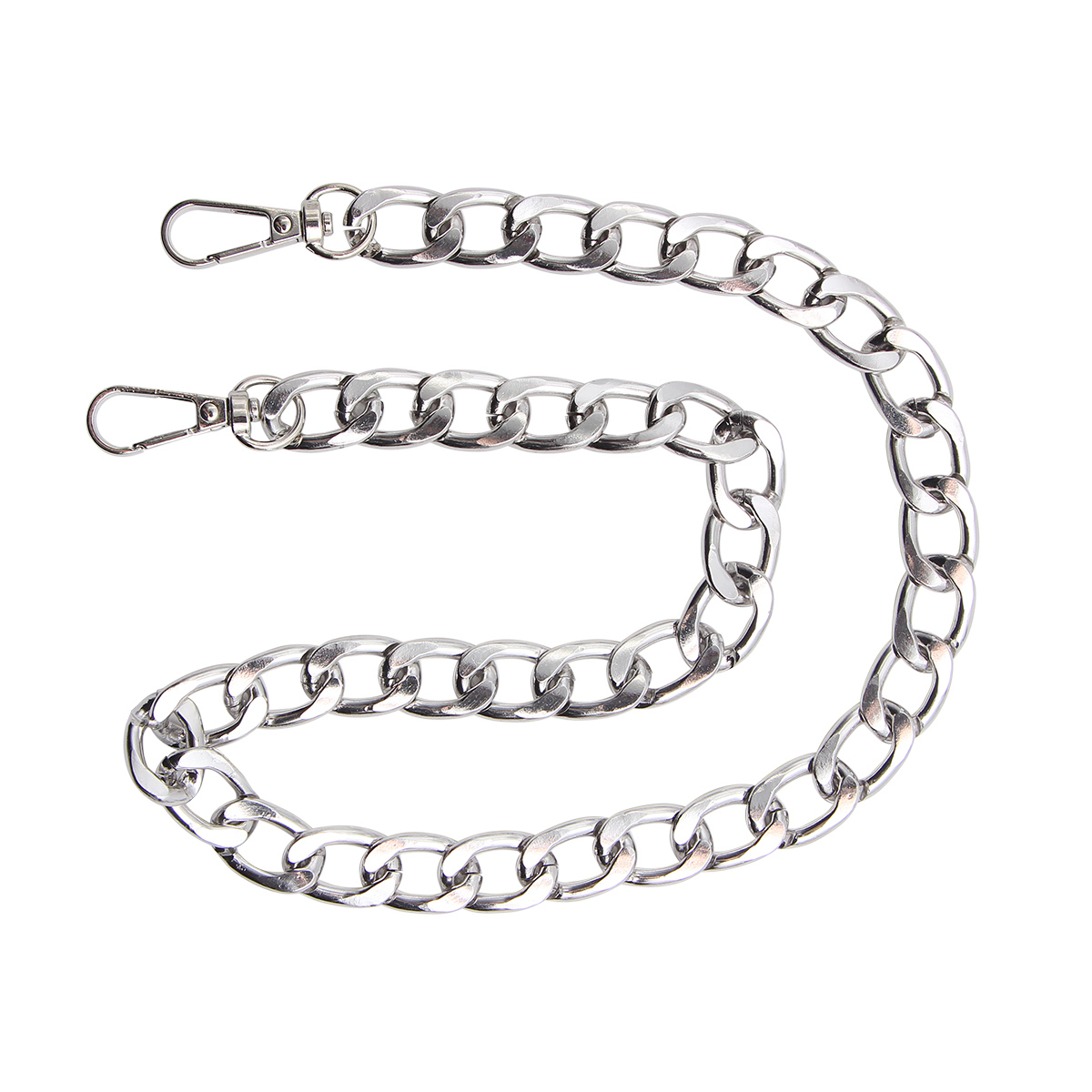 Цепочка для сумки с карабинами алюм 60см 13,5х20,5мм, плоская, цв.серебро, 9729832