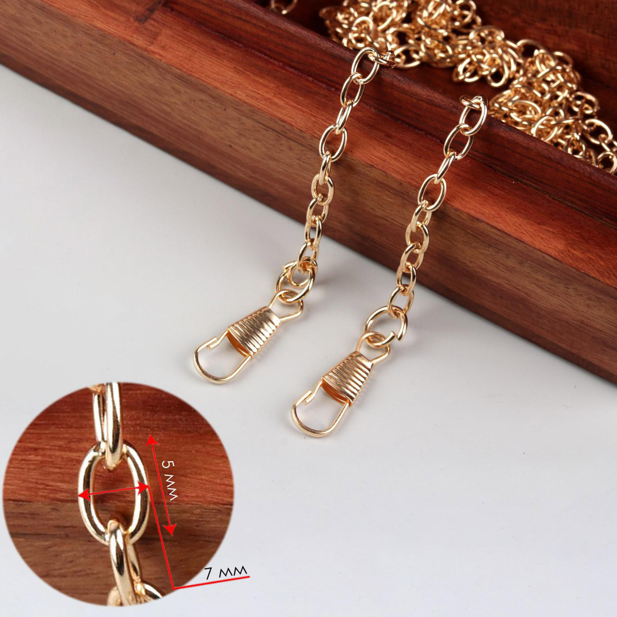 Цепочка для сумки с карабинами железо 120см 5*7мм золотой 3636031