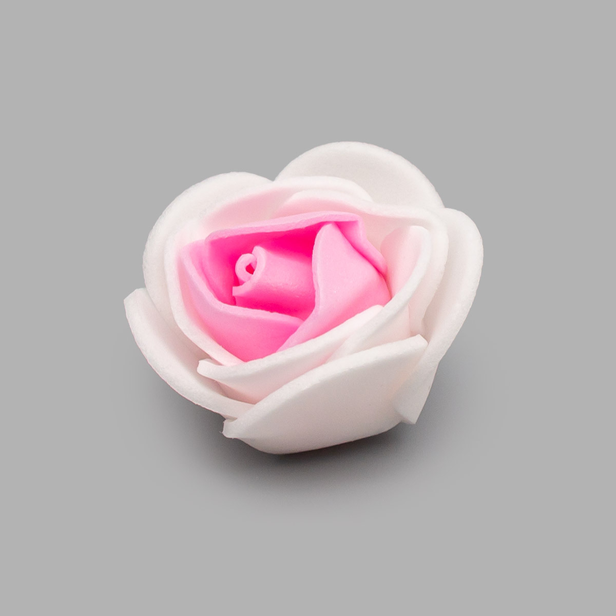 Цветочек Розочка из фоамирана 3 8мм, упак(8 шт), цв. белый/розовый, 25154