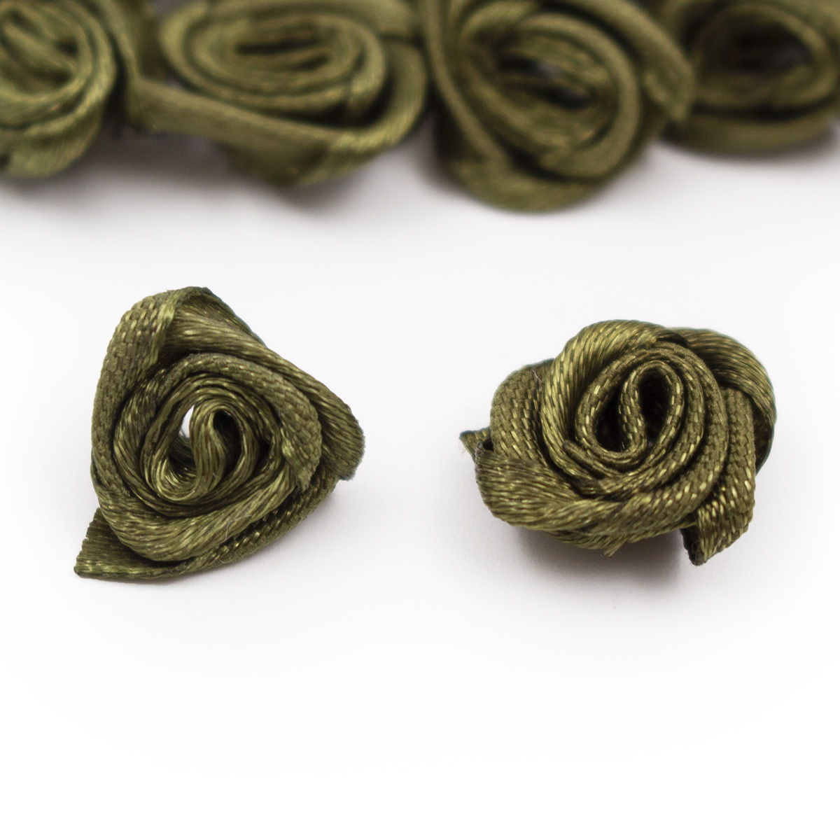 Цветок пришивной атласный Роза 15 мм, т.оливковый, 10 шт