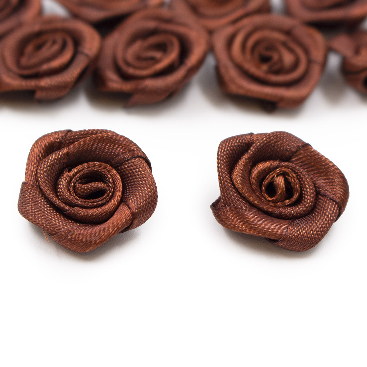 Цветок пришивной атласный Роза 19 мм, коричневый, 10 шт