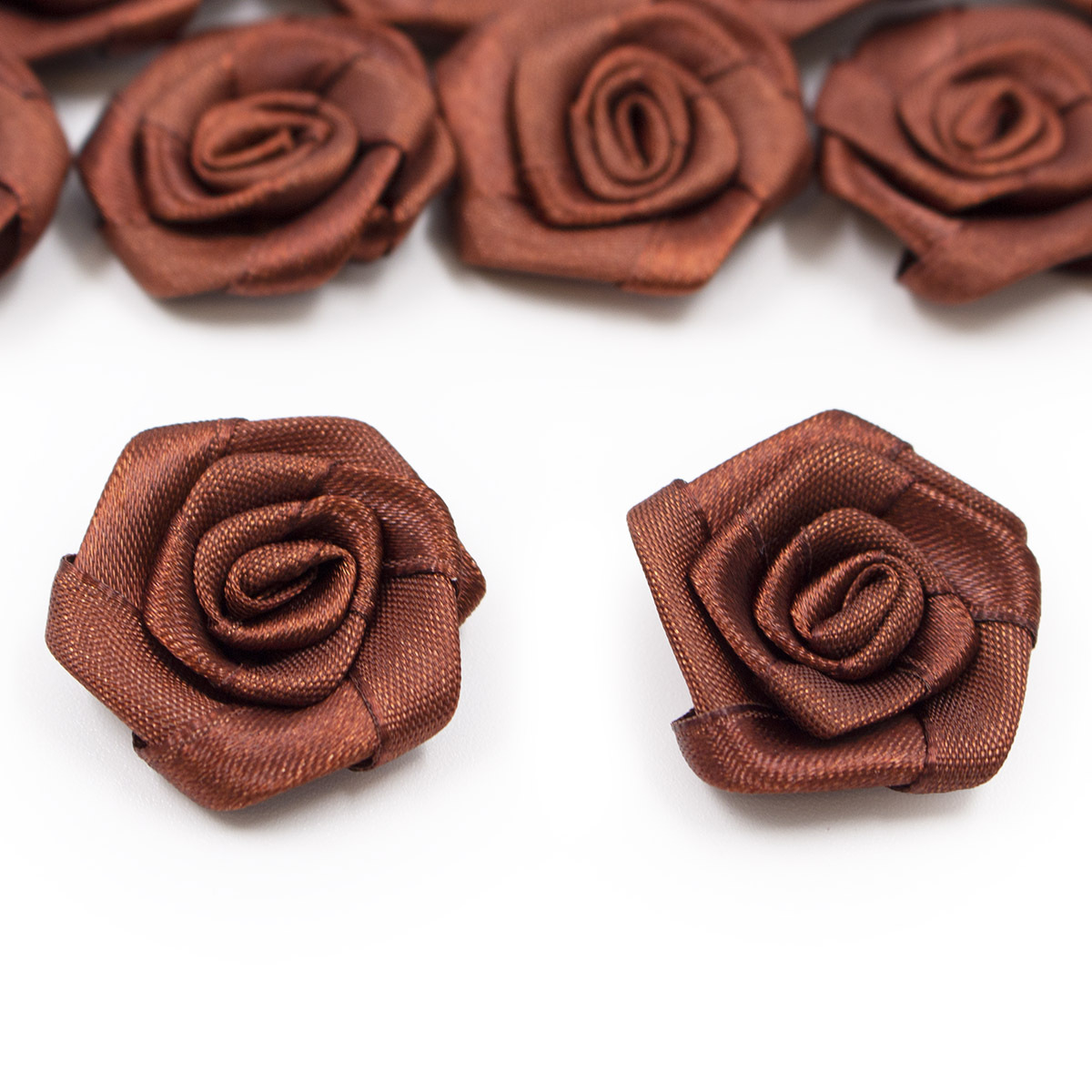 Цветок пришивной атласный Роза 30 мм, 869 коричневый, 10 шт