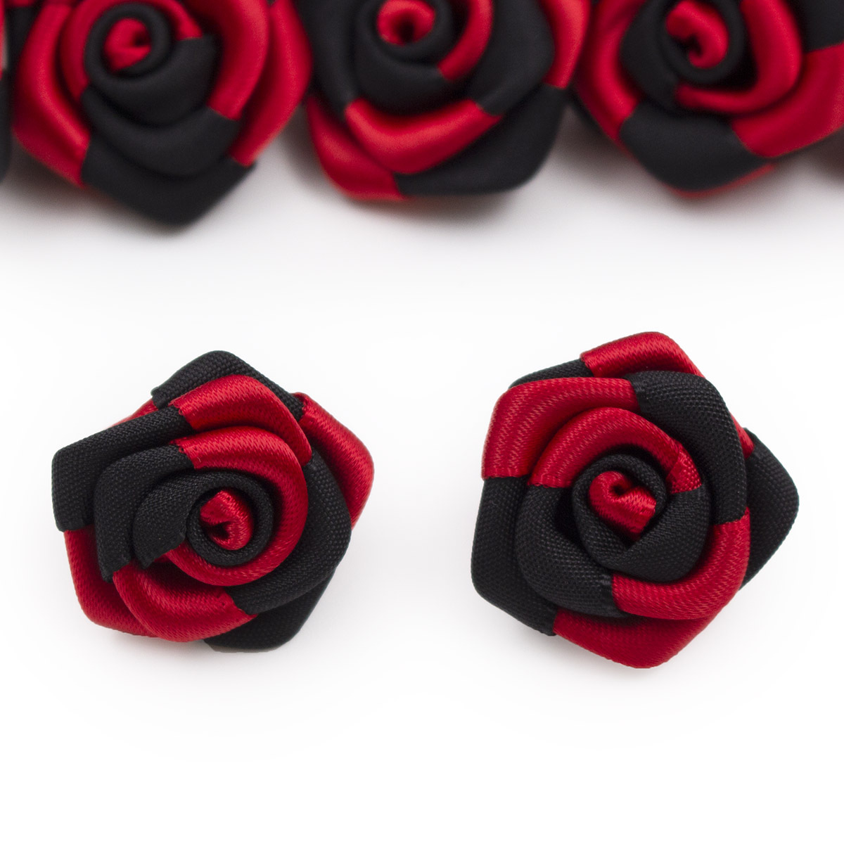Цветы пришивные двухцветные Роза 2.5 см (250/030 красный/черный), 10 шт