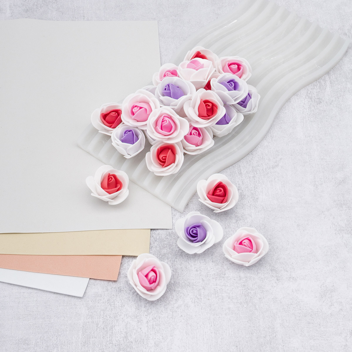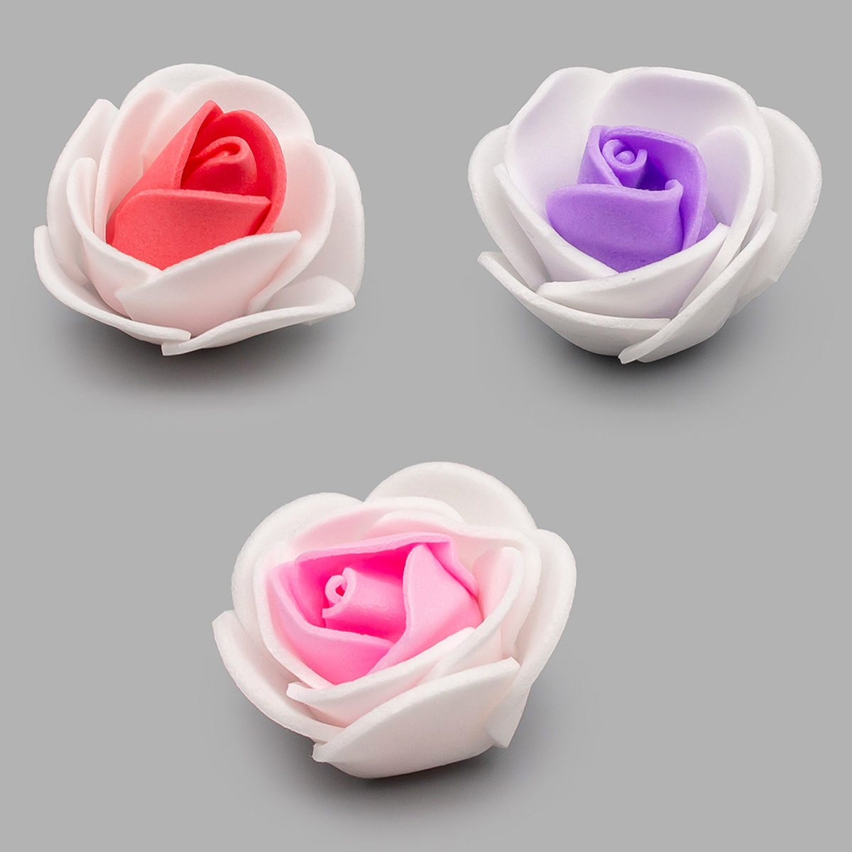 Цветочек-розочка из фоамирана 38 мм, микс №1, 3 цвета, 24 шт