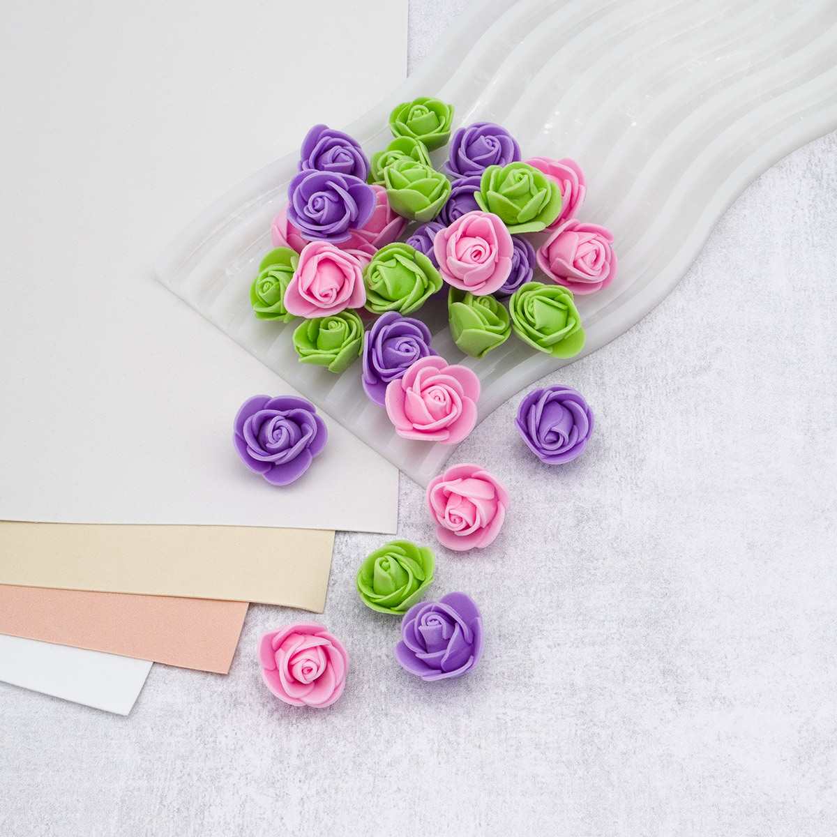Цветочек-розочка из фоамирана 38 мм, микс №16, 3 цвета, 30 шт