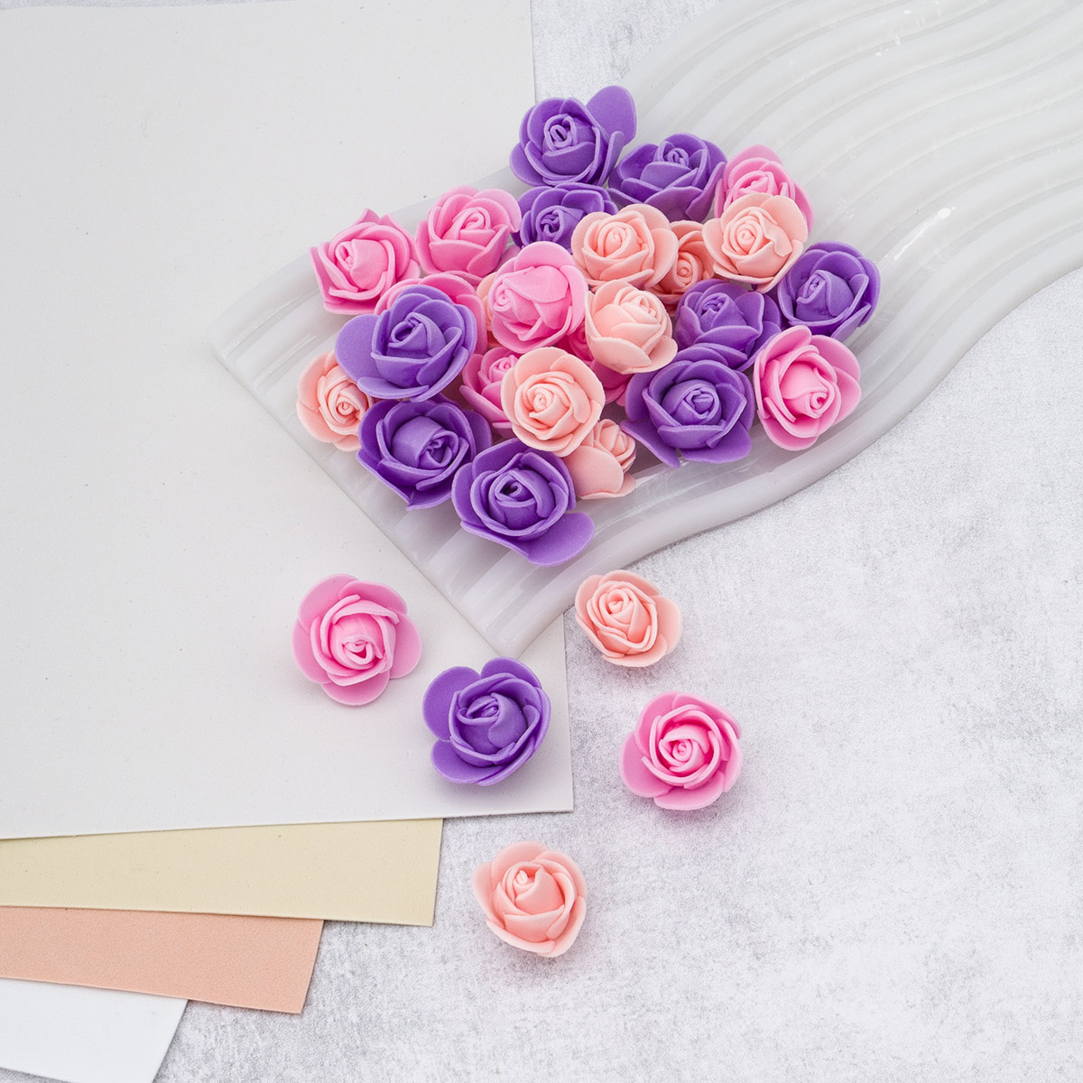 Цветочек-розочка из фоамирана 38 мм, микс №20, 3 цвета, 30 шт