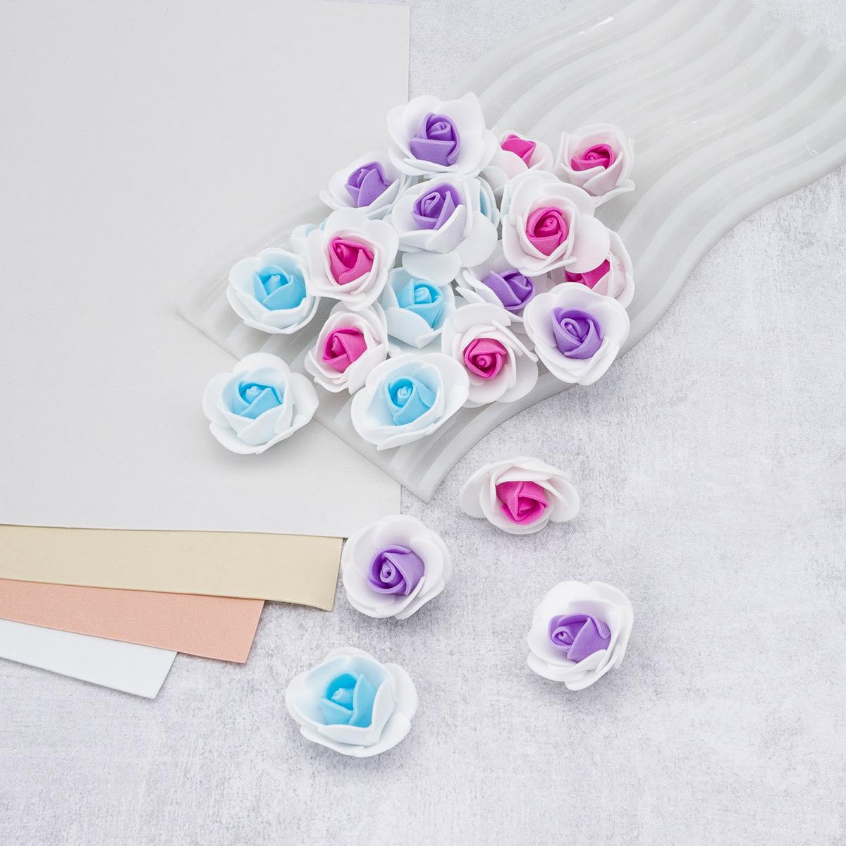 Цветочек-розочка из фоамирана 38 мм, микс №5, 3 цвета, 24 шт