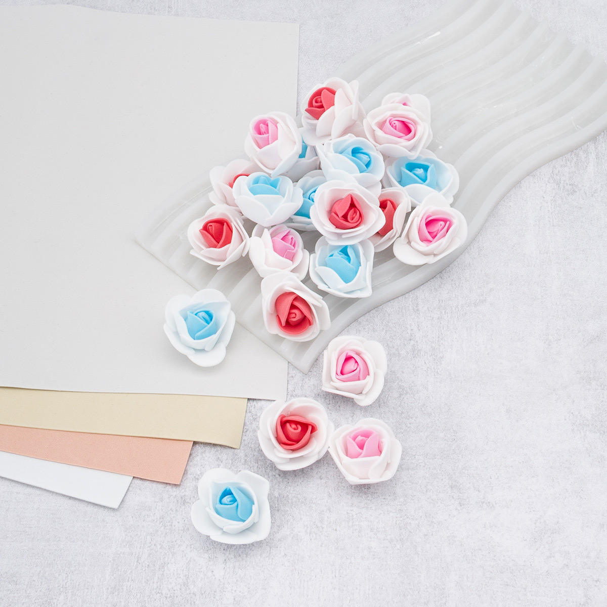 Цветочек-розочка из фоамирана 38 мм, микс №8, 3 цвета, 24 шт