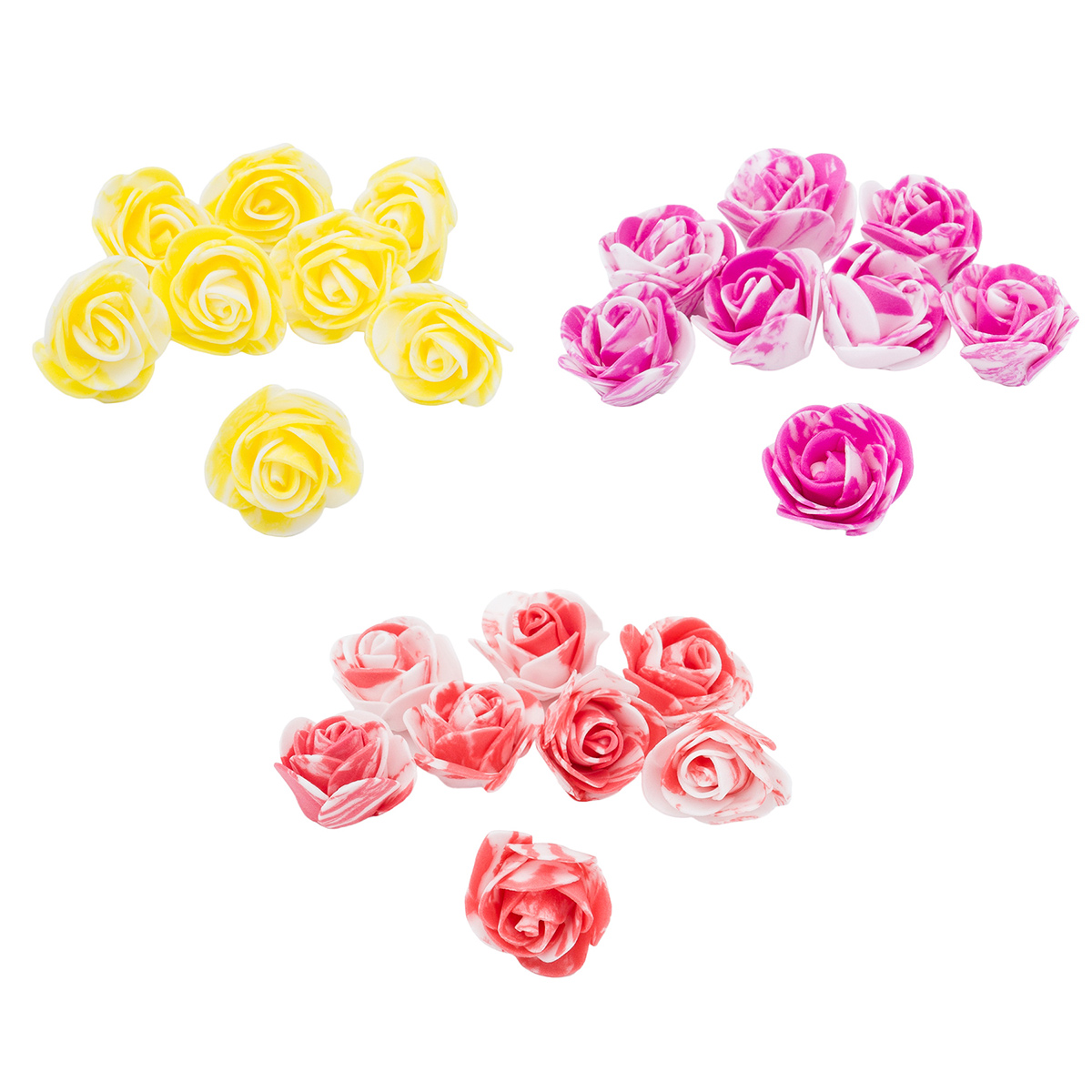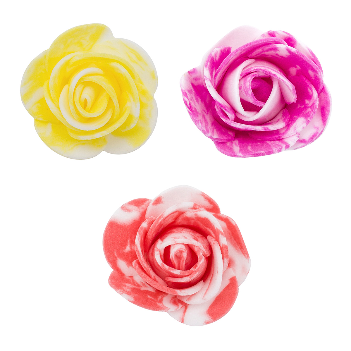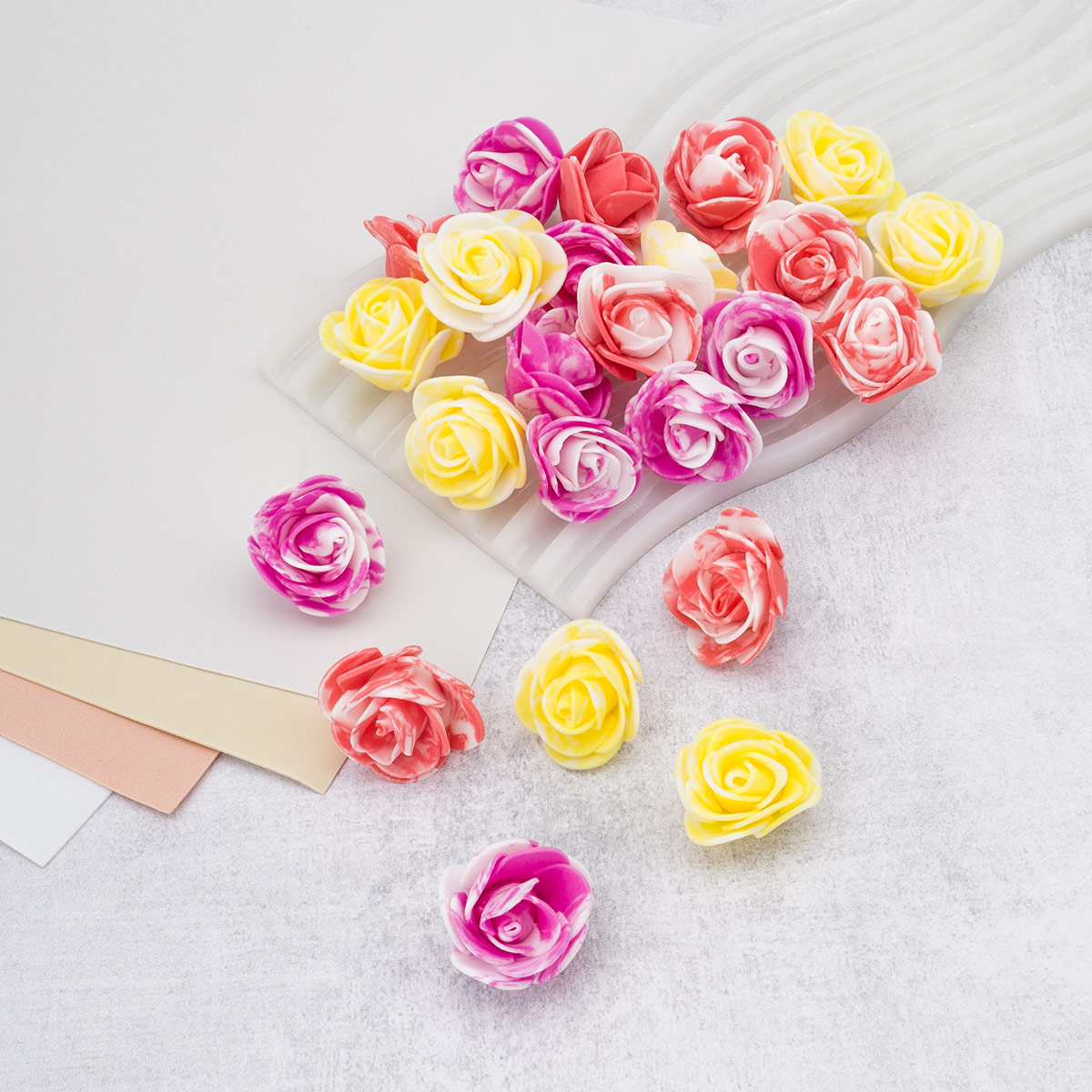 Цветочек-розочка мраморная из фоамирана 38 мм, микс №10, 3 цвета, 24 шт