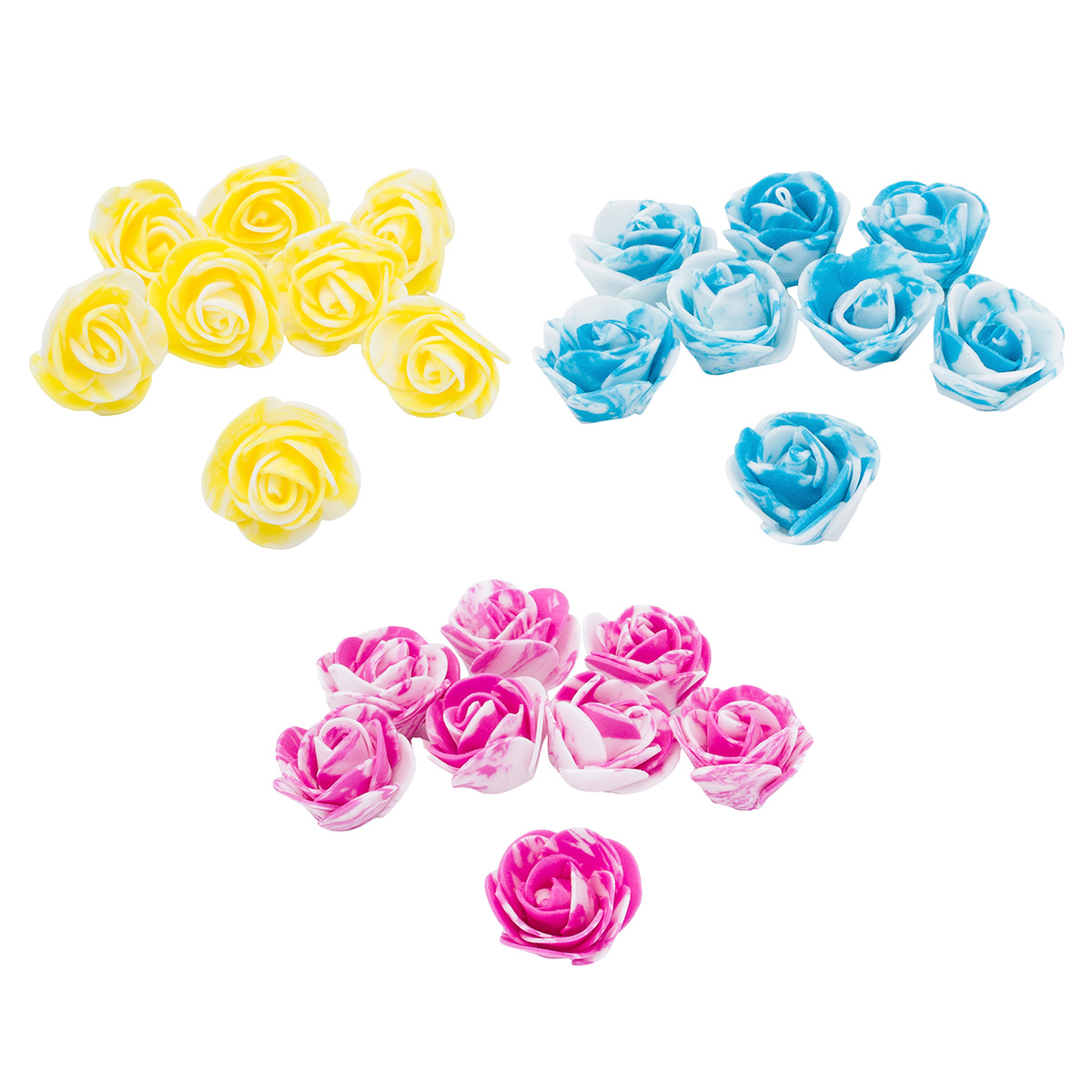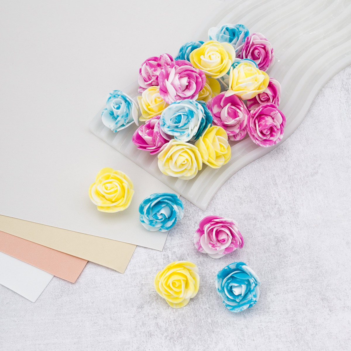 Цветочек-розочка мраморная из фоамирана 38 мм, микс №11, 3 цвета, 24 шт