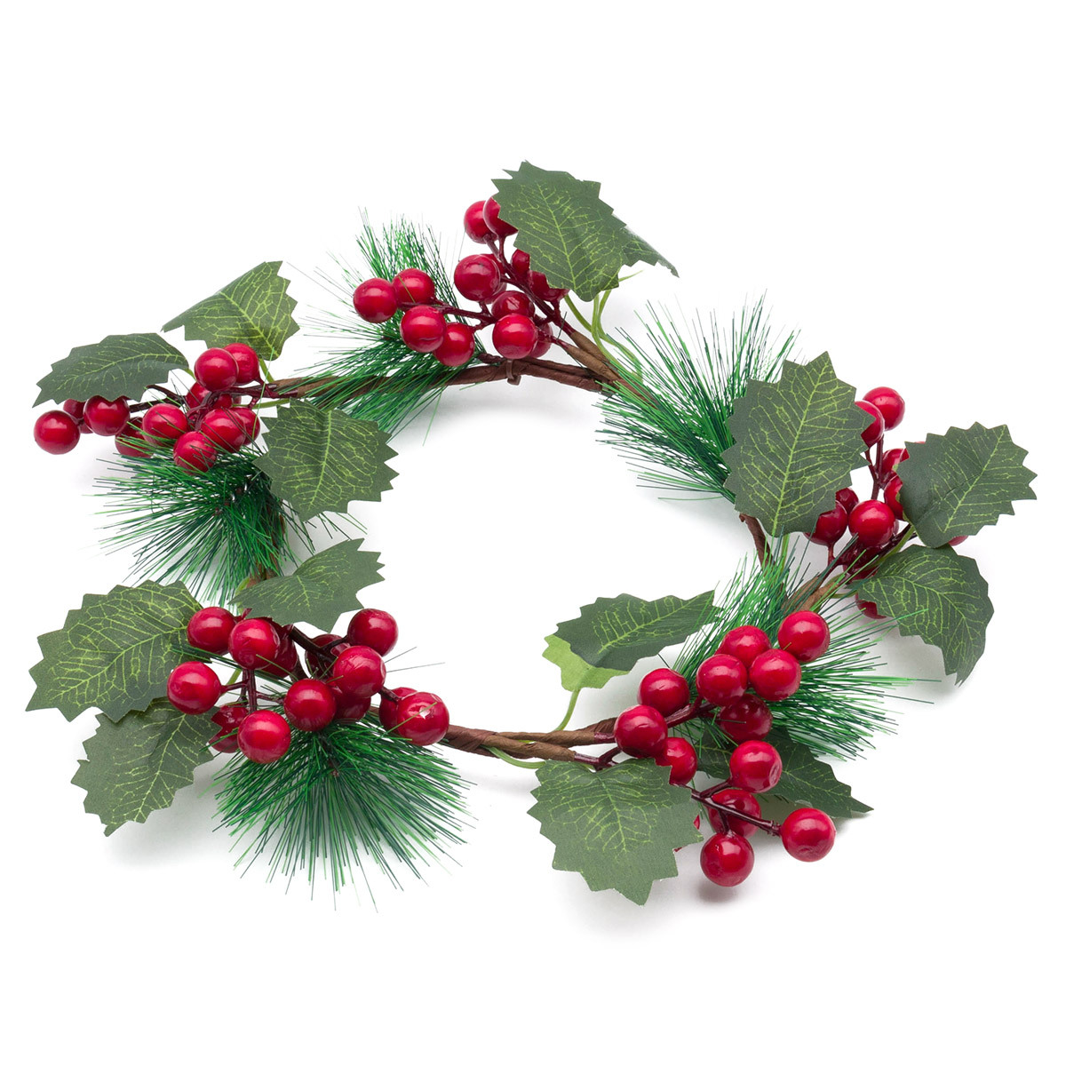 Венок из сосновых веток с ягодами и листьями, d27см, XY18-893