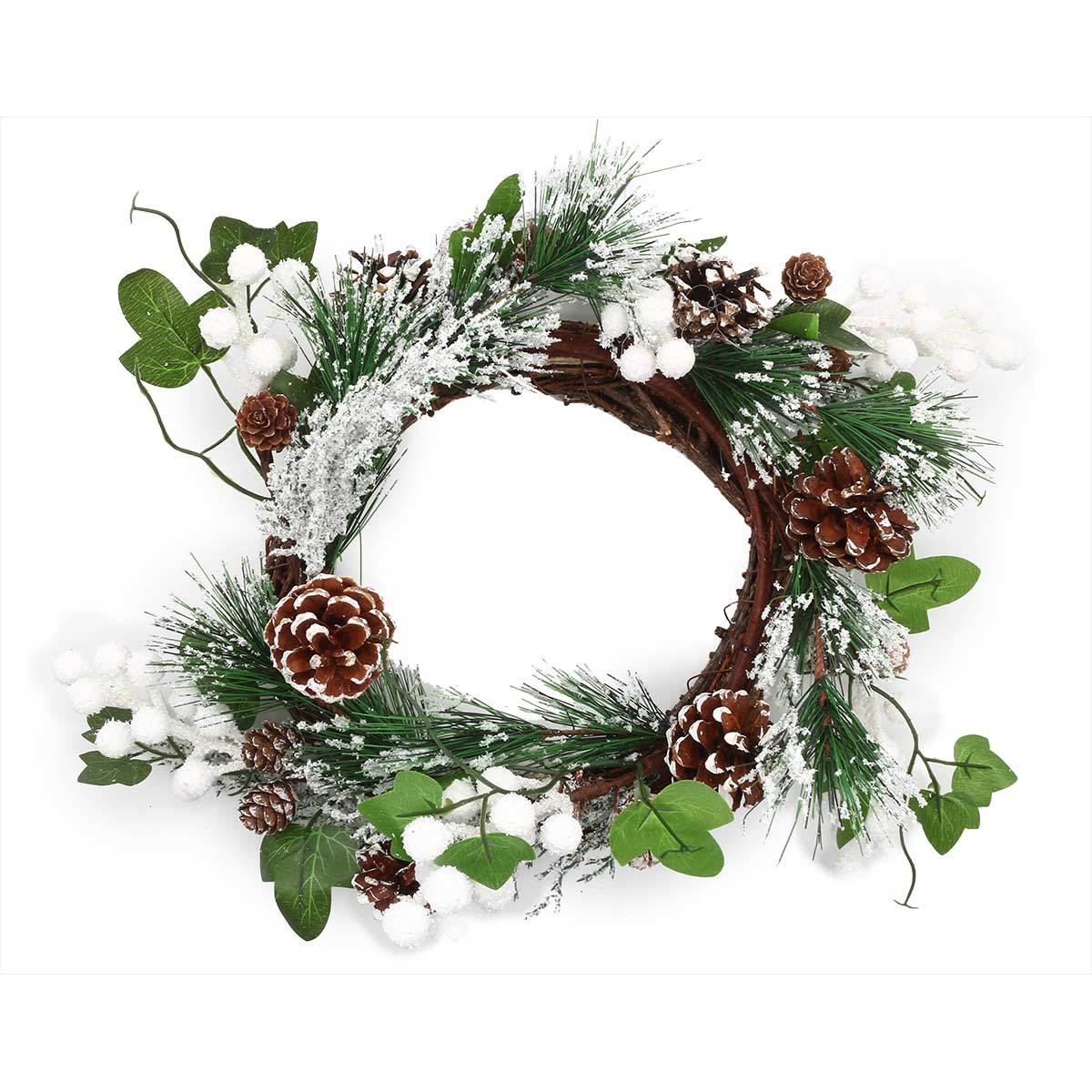Венок декоративный из сосновых веток с ягодами и шишками 32см /TOS/