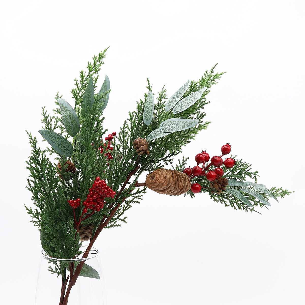 Ветка декоративная капля с шишками и ягодами, 55см, XY22-560R